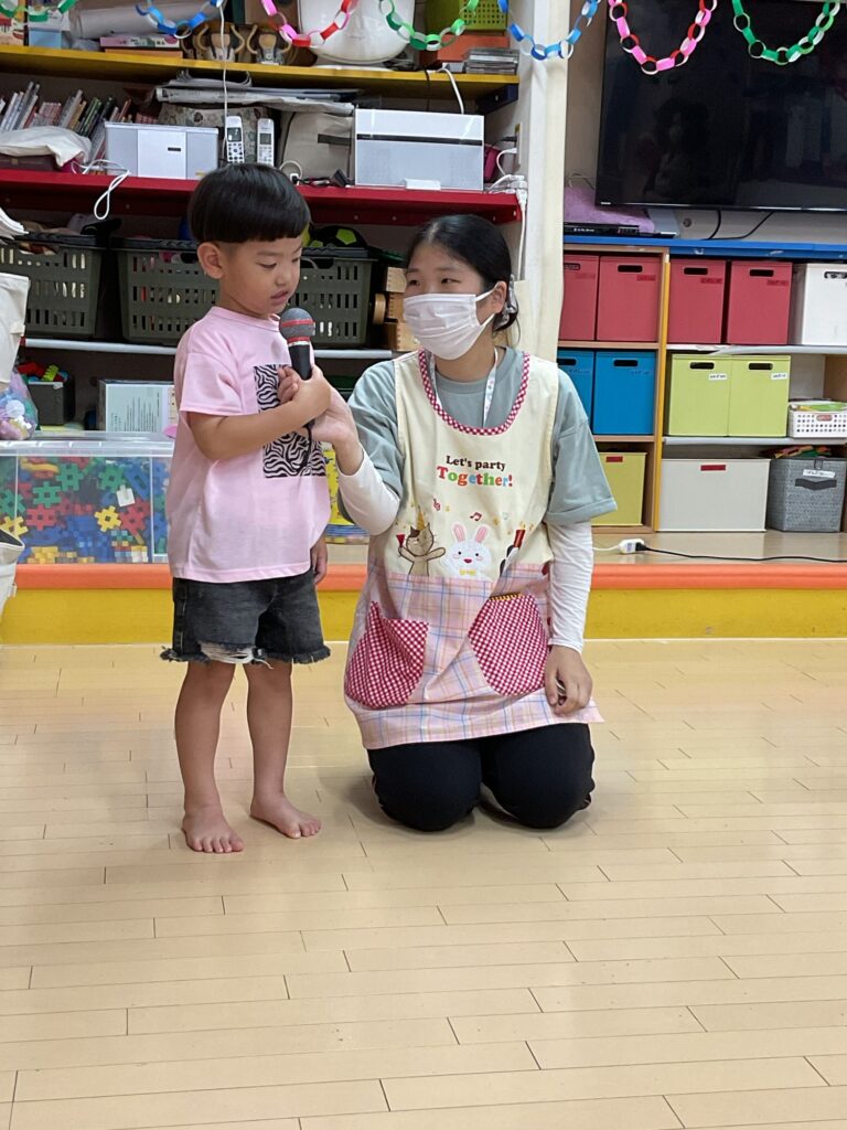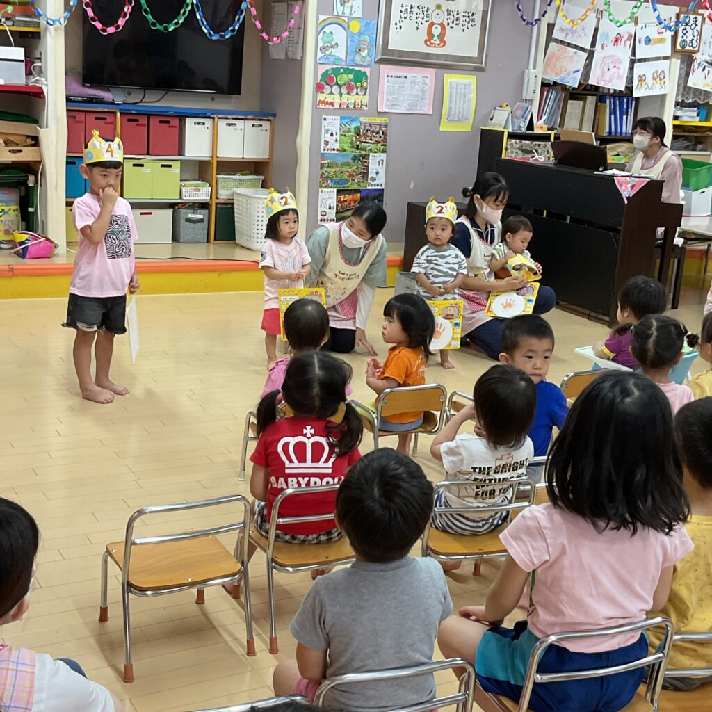🎉お誕生日会🎉 行事 2025年07月25日(金曜日) 魚がはねて何になるかな⁉️ インタビュー⭐️ プレゼント渡し🎁 誕生日おめでとう😆 先生からの出し物は、七夕の話しでした 😊 Tweet コメントは受け付けていません。 ⭐️幼児体操⭐️ 🎶お散歩🎶