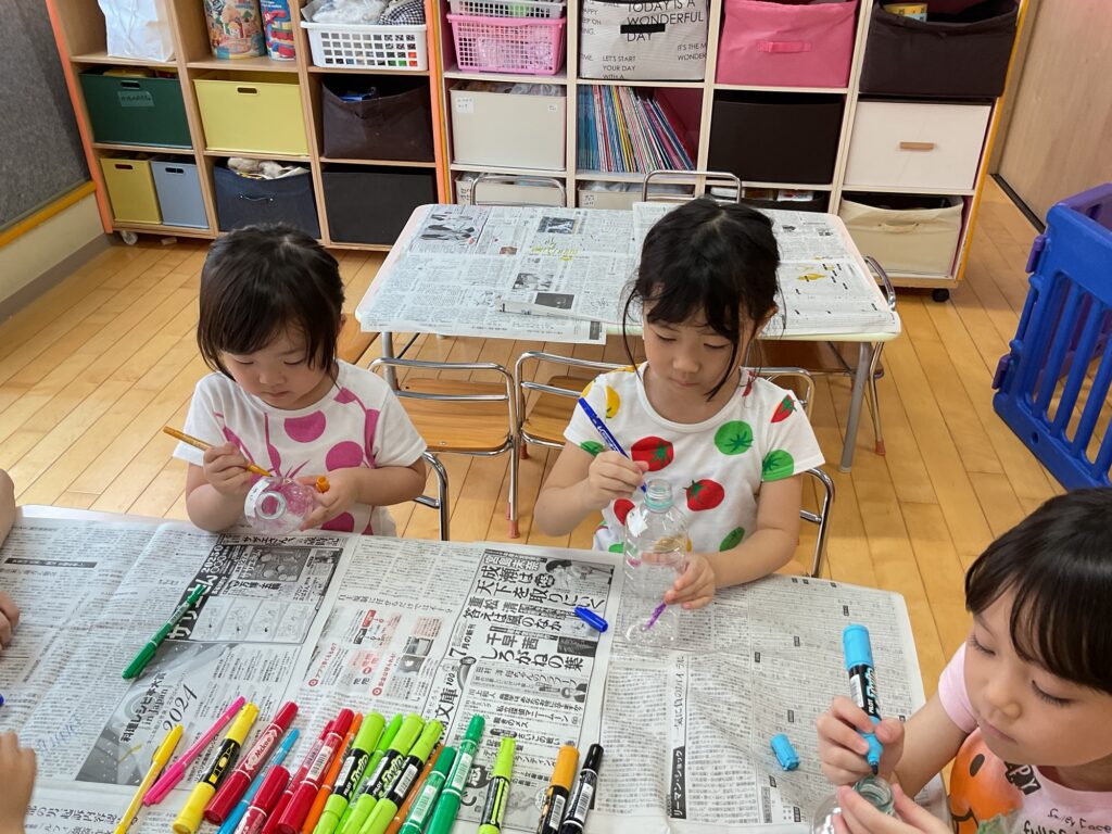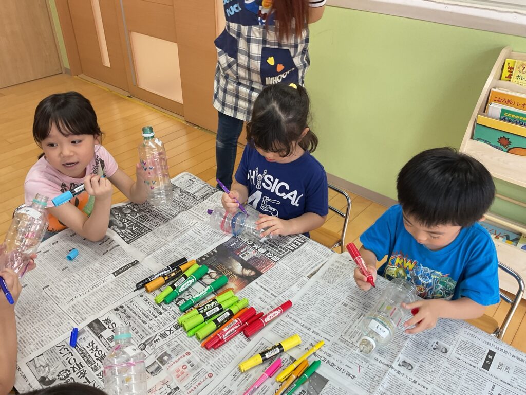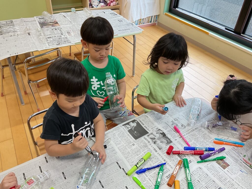 🎶ダンス🎶 さくらぐみ 2025年08月04日(月曜日) 年長さんと年中さんからレッスンを行いました🎶 年少さんも頑張りました🎶 油性マジックでペットボトルを塗ったり、絵を描いたりして水遊びの 玩具づくりをしました♪ Tweet コメントは受け付けていません。 🏊♂️スイミング🏊♀️ 誕生日会🎉