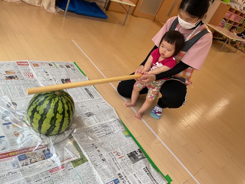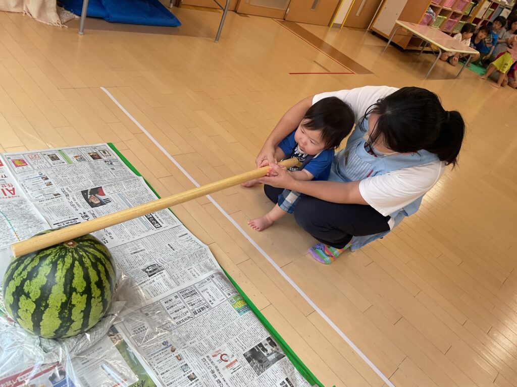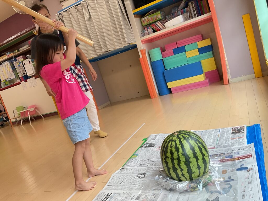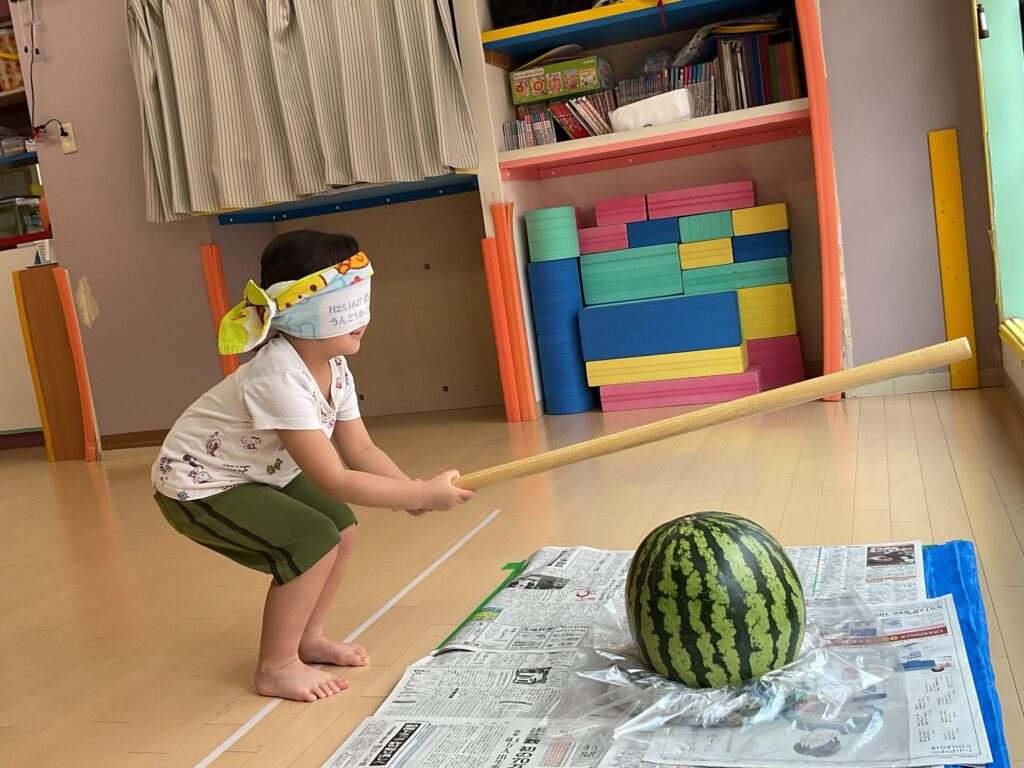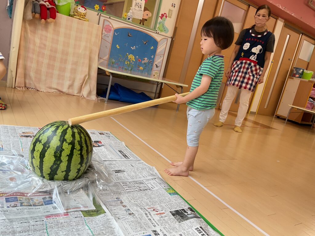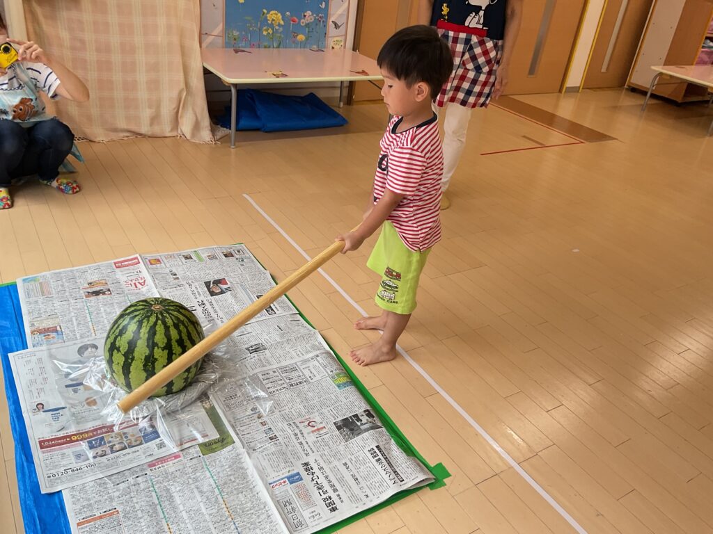 つぼみさんから順番にスイカ割りにチャレンジしました♪