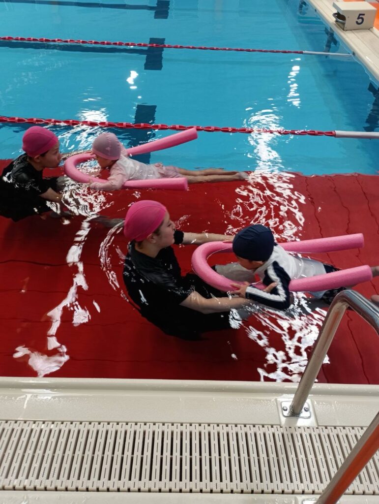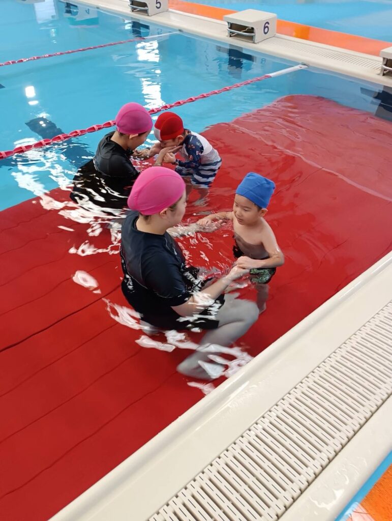 ⭐️スイミング⭐️ さくらぐみ 2025年09月05日(金曜日) スイミングに出発‼️ 準備体操🎶 シャワー🎶 ブゥパッ😄 ばた足 遊びの時間😄🎶 頭を水につける練習😊 お昼は、お楽しみのカレーでした😋 Tweet コメントは受け付けていません。 ⭐️お話し会⭐️ 🎂誕生日会🎂