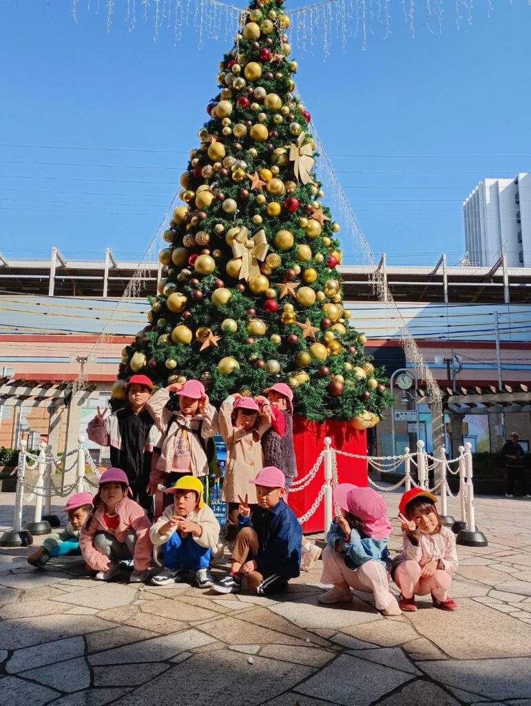 駅前広場のクリスマスツリーを見て楽しみました😊