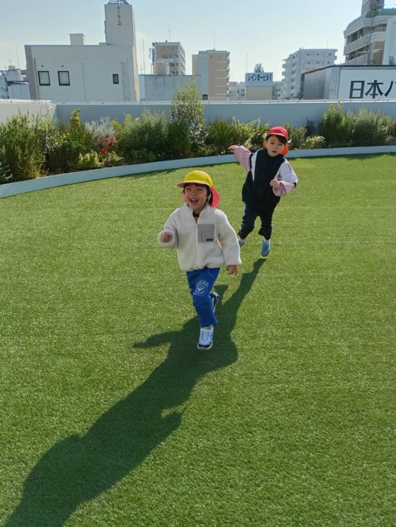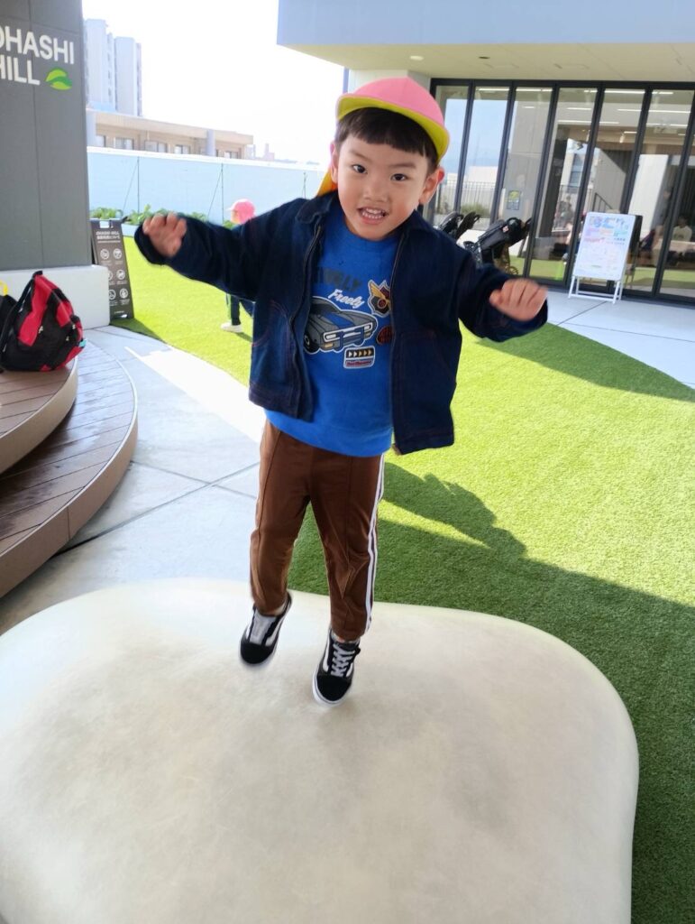 柔らかい遊具の上でジャンプしたり、ゴロゴロしたりしていました🎶