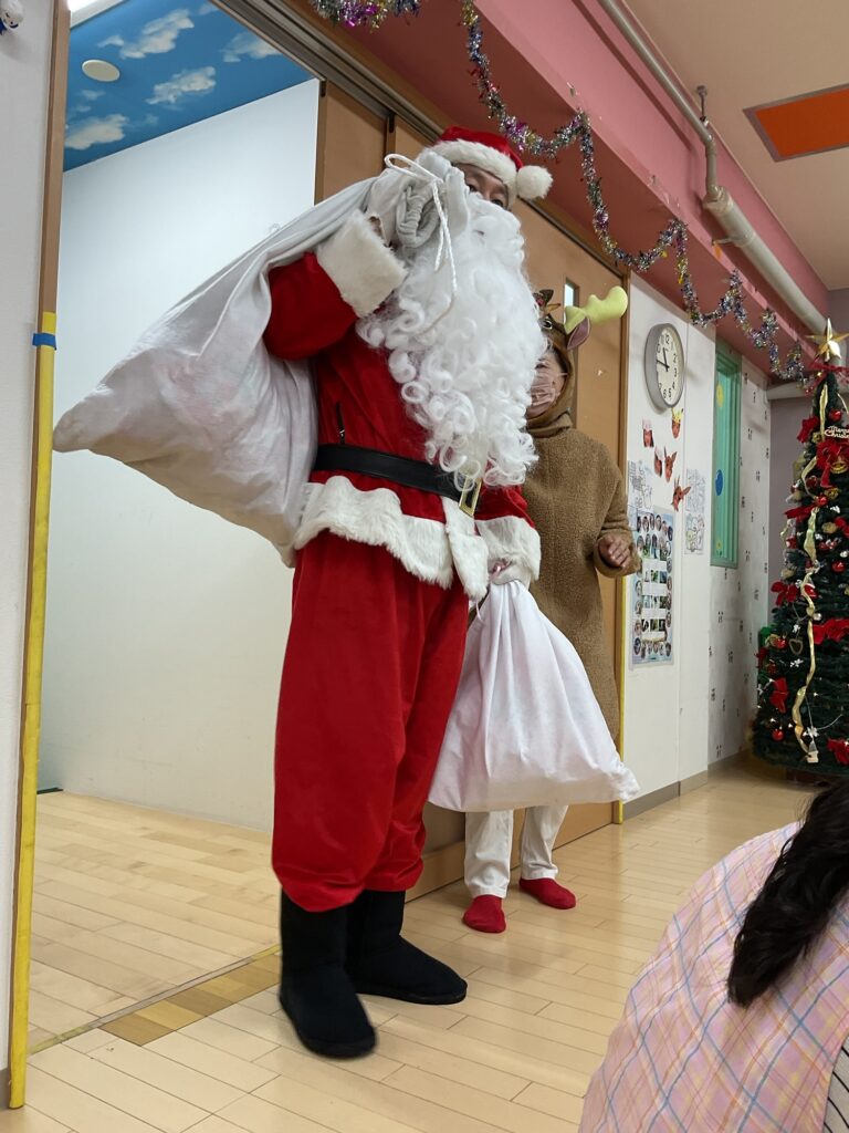 鈴の音が聞こえてくるとサンタさんが来てくれました♪