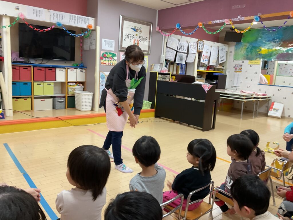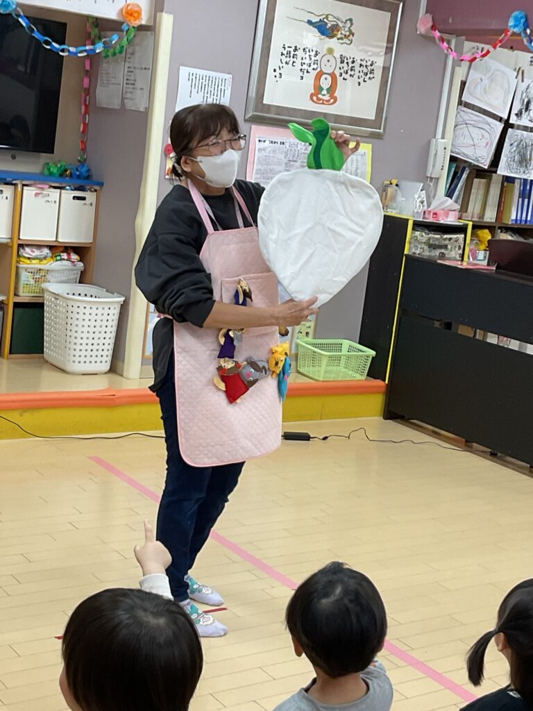 先生の出し物は、大きなカブのエプロンシアターでした🎶