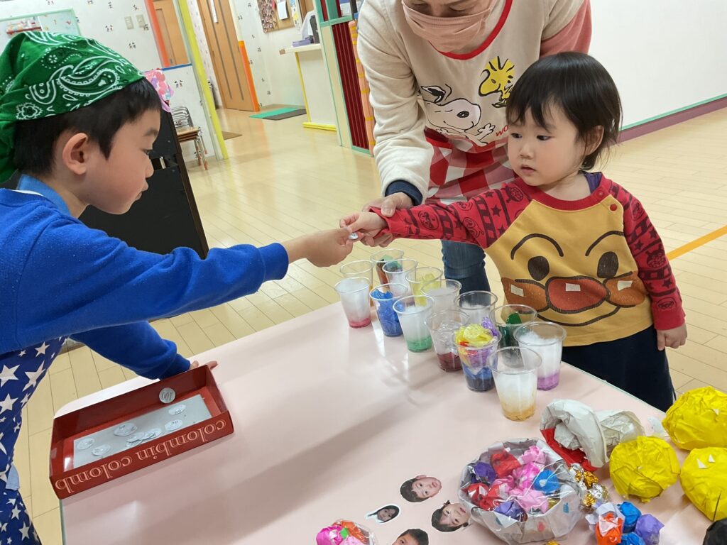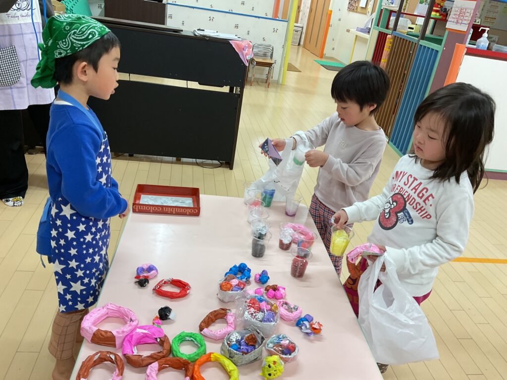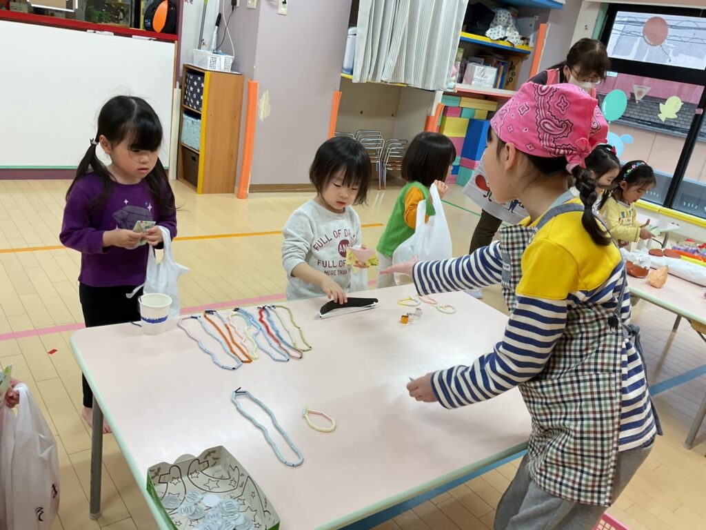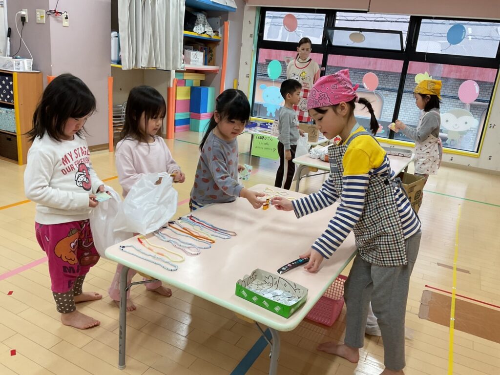 ⭐️お買い物ごっこ⭐️ 未分類 2026年03月18日(水曜日) 年長さんが定員さんになってくれました😊 自分で好きな商品を買ってお買い物を楽しんでいました😆🎶 さくら組さんは園長先生のくじ引きやさんもありました♪ Tweet コメントは受け付けていません。 🎶お散歩🎶