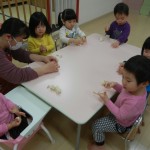 今日、まいむ保育園のうめぐみさんのお友達は、 楽器遊びをしましたぁ~o(^-^)o 『オモチャのチャチャチャ』や『うぐいす』などの 歌に合わせて、タンバリンやすず、マラカスを鳴らして、 とっても楽しそうでした(´V`)♪ […]
